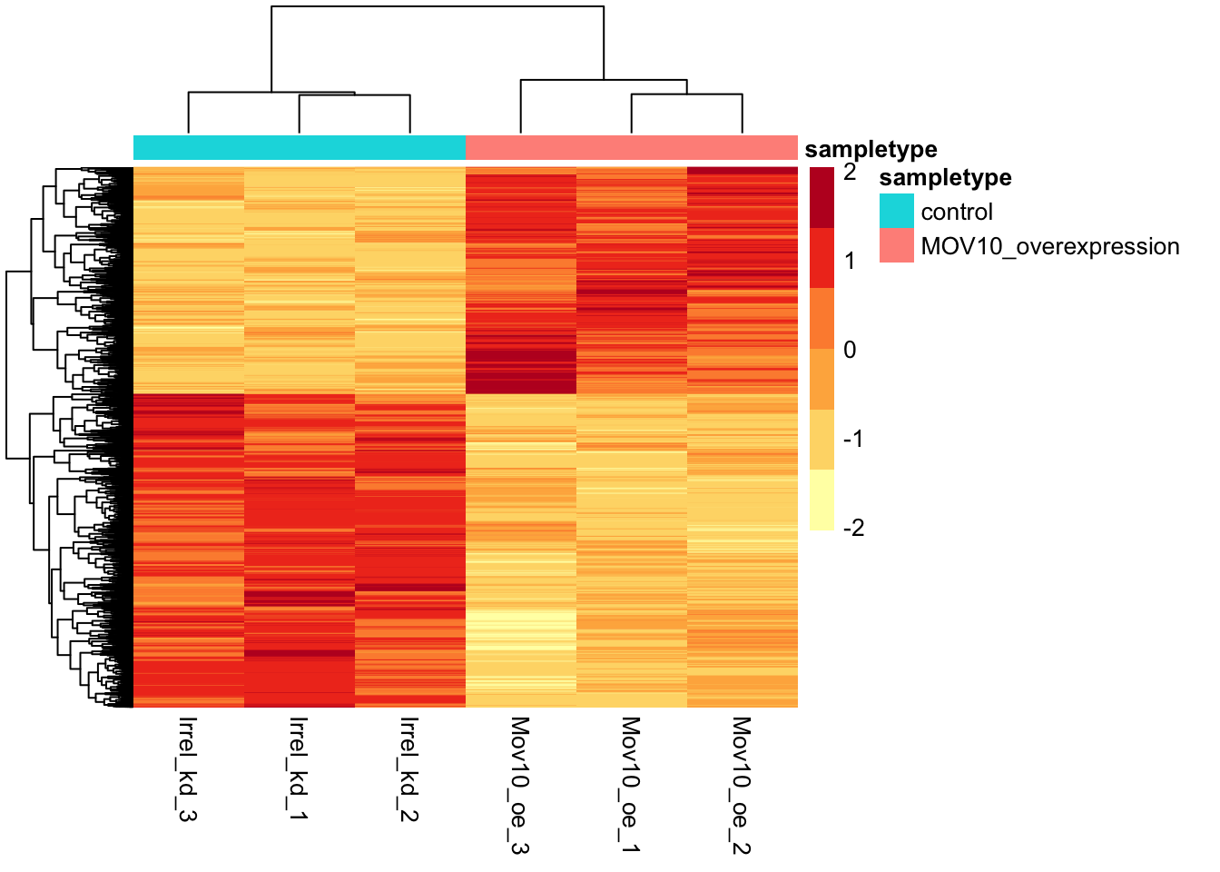 gene Irrel_kd_1 Irrel_kd_2 Irrel_kd_3 Mov10_kd_2 Mov10_kd_3 Mov10_oe_1