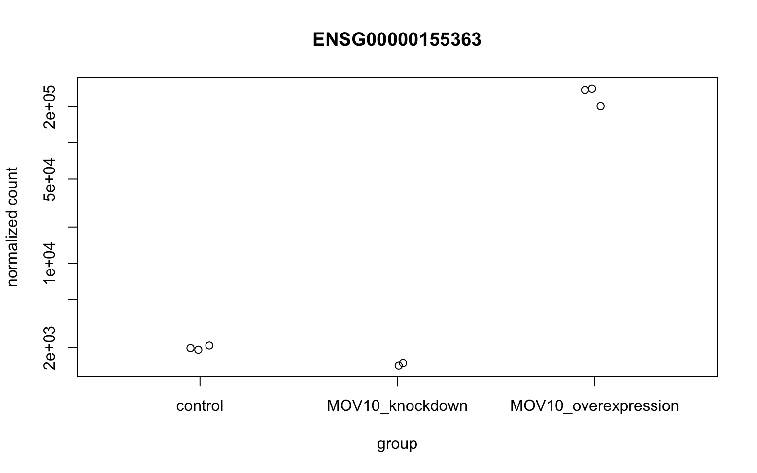 from DESeq2. plotCounts()
