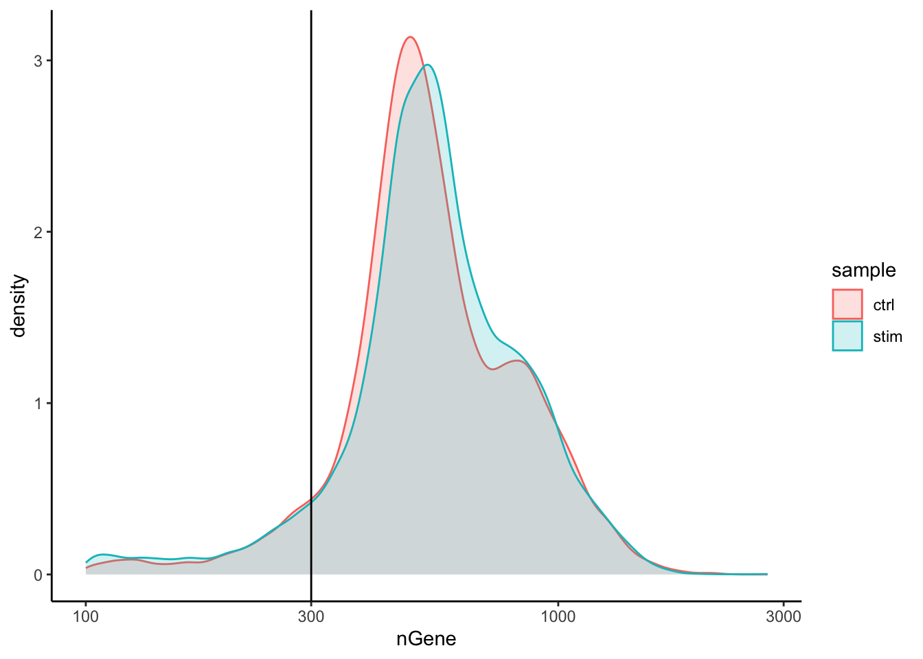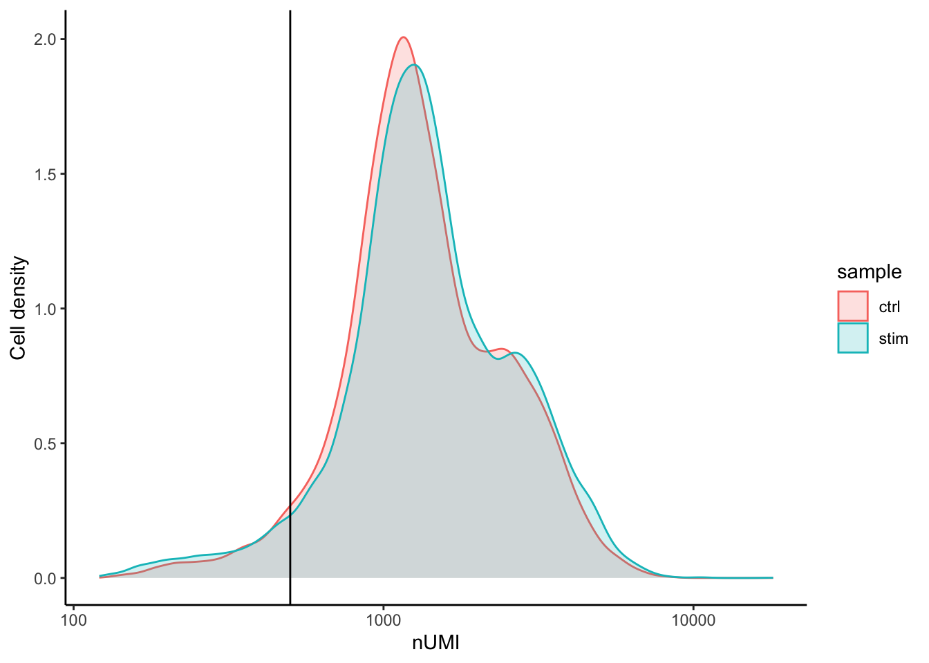 We can see that majority of our cells in both samples have 1000 UMIs or greater, which is great.