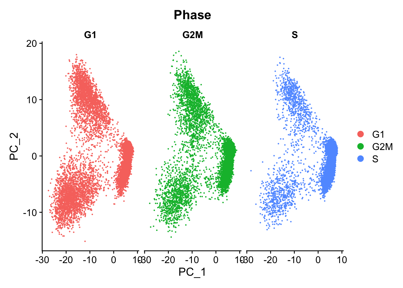 After scoring the cells for cell cycle, we would like to determine whether cell cycle is a major source of variation in our dataset using PCA.
