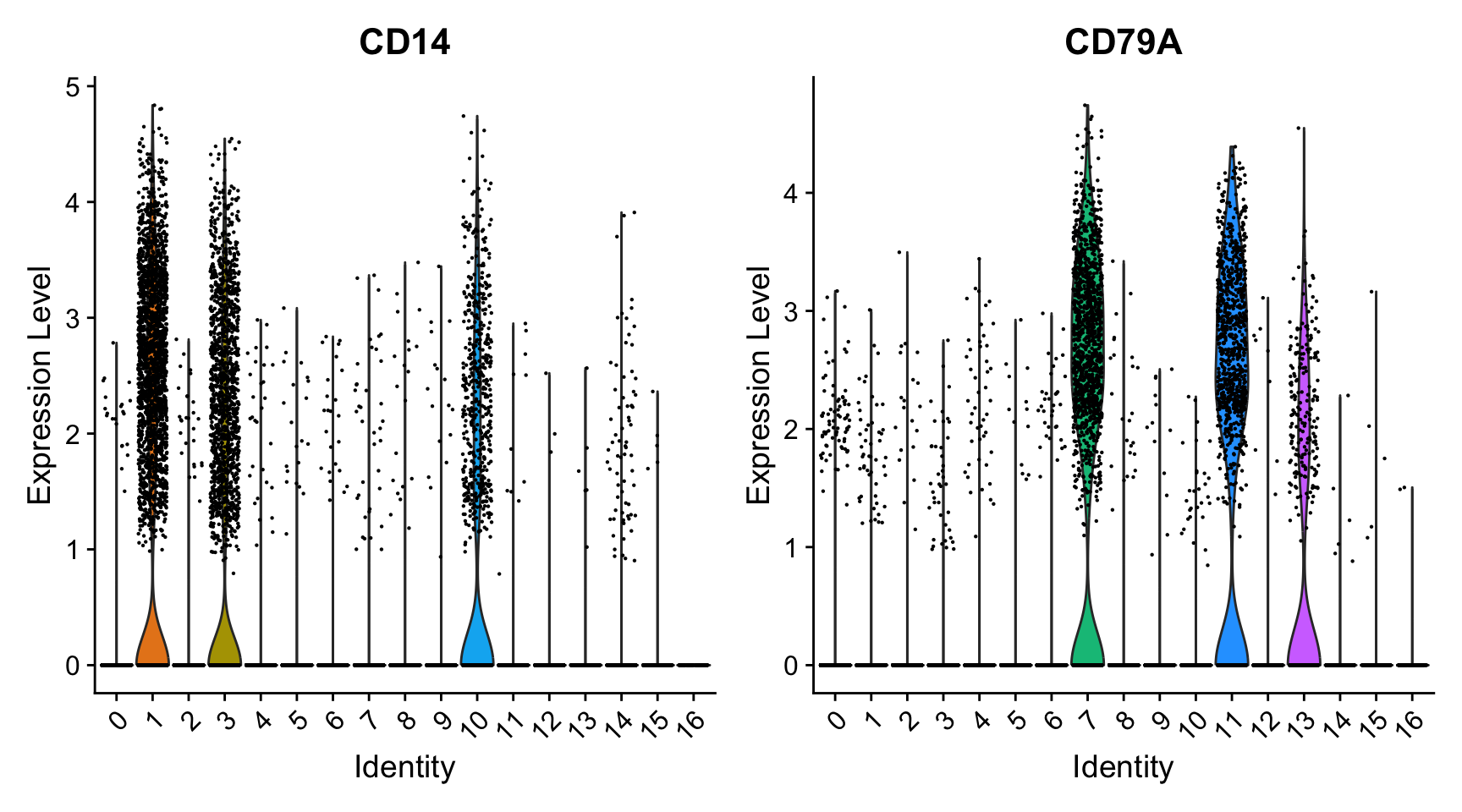 Positive: CD74, IGKC, HLA-DRA, IGHM, HLA-DRB1, HLA-DQA1, HLA-DPA1, CD79A, HLA-DPB1, HLA-DQB1