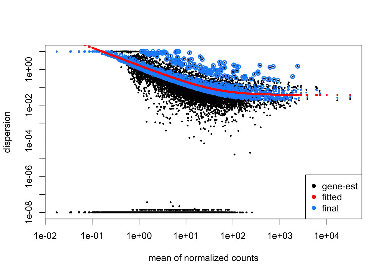 # Plot gene-wise dispersion estimates to check model fit