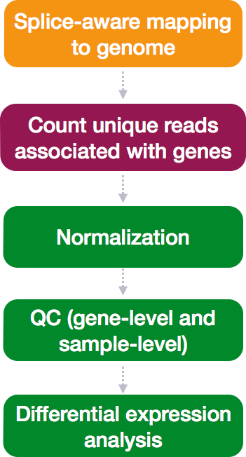 With differential expression analysis, we are looking for genes/transcripts that change in expression between two or more groups, for example: