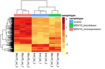 In addition to plotting subsets, we could also extract the normalized values of all the significant genes and plot a heatmap of their expression using pheatmap().