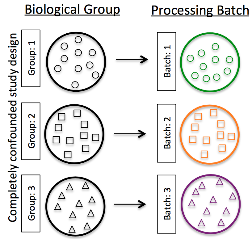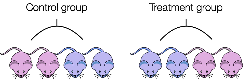 For example, we know that sex has large effects on gene expression, and if all of our control mice were female and all of the treatment mice were male, then our treatment effect would be confounded by sex. We could not differentiate the effect of treatment from the effect of sex.